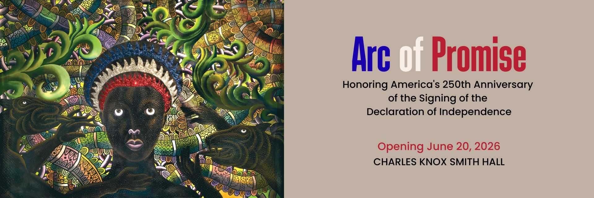 The exhibition’s title is inspired by Philadelphia-born artist Jerry Pinkney (1939–2021), whose notion of the “arc of promise” acknowledges America’s painful histories—slavery, displacement, injustice—while affirming its capacity for renewal. Pinkney’s vision, grounded in optimism and equity, frames the exhibition’s central idea: that the promise of America is not fixed, but continuously reimagined by those who believe in its unfolding potential.